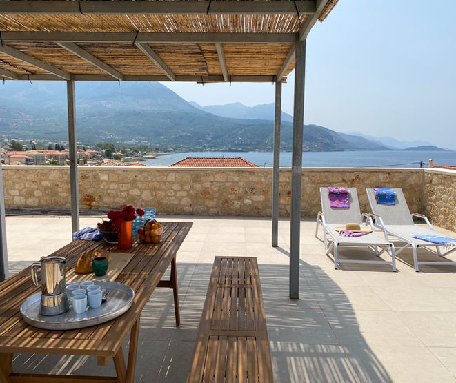 Βεράντα στον τελευταίο όροφο με θέα 360 μοιρών στη θάλασσα και το βουνό